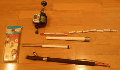 竿は、昔折れてしまった1980円のルアー竿の根元を使います。