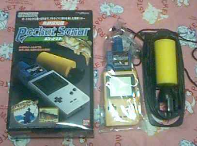 商品名は、ポケットソナーといい、ゲームボーイへの接続インタフェースにソフトが内蔵され、振動子は15mほどのコードで接続され、フロートで浮かせるものでした。