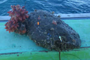 たまに重くて動かないものが掛かり、タコかな・・・と期待するのですが、ホヤ付の石です。