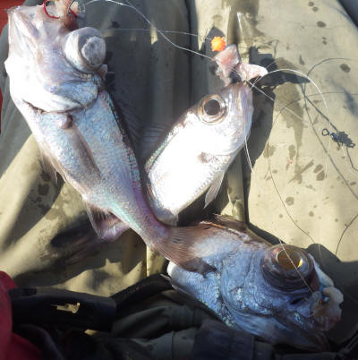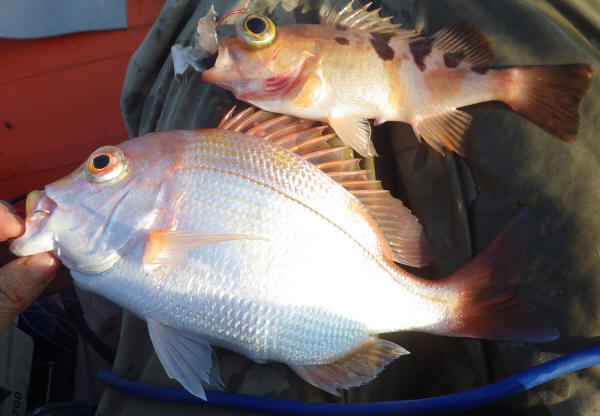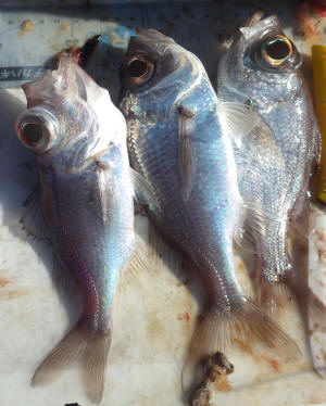 ということで、今日の私の釣果はシロムツ6匹、マサバ4匹、キダイ3匹、トゴットメバル1匹、アズマハナダイ1匹、オキトラギス4匹(リリース)、クラカケトラギス1匹(リリース)、ヒレタカフジクジラ1匹(リリース)でした。