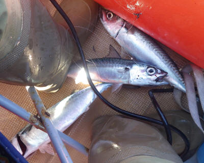 上がってきたのは予想通りサバです。良型のサバ3匹です。ゴマサバではなく、立派なマサバでした。