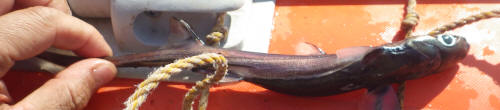 最大のものは40センチクラスなので、人間の餌用にキープです。残りの二匹を深場釣り用の餌に供出することにしました。