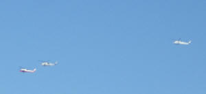 海上ではヘリコプターが演習を続け、海上では護衛艦も練習をしています。海上保安庁の大型船も出航しています。