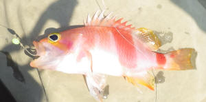 次の場所では当たりが出ませんが、上げてみるとアズマハナダイが付いていました。