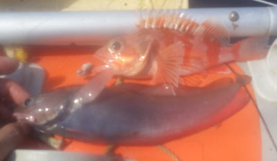 ユメカサゴが釣りたいな、と思い、仕掛けを底まで落としてみると、ドンコと小型のユメカサゴが上がってきました。
