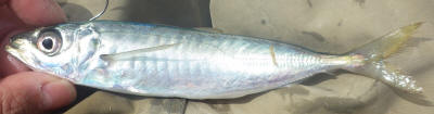 しかし、秘密兵器の情報を確かめるまでもなく、 きむさんが早速釣りました。カタクチイワシと豆アジです。