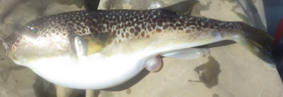 私の方にも一度良い当たりがあったのですが、上がってきたのは、大型のショウサイフグでした。